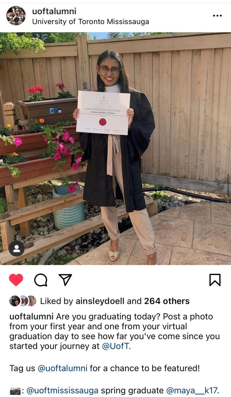 I have worked on the Convocation portfolio since 2018, where I developed social media strategies and schedules for both in-person and virtual ceremonies. I led the development of multiple video projects, consulted on the creative approach and utilized user-generated content to welcome the newest grads to the community.